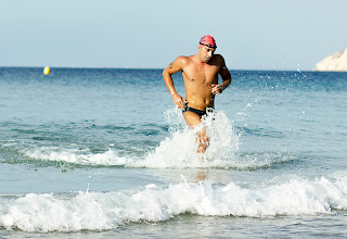 Una vez estuvimos todos en el agua se dió el pistoletazo de salida, y desde ese momento en que metí la cabeza en el agua, me olvidé de todo y marqué mi ritmo, solo giré un par de veces la cabeza al respirar, sin poder ver a nadie cerca, así que procuré sortear las olas y que la corriente no me desviara en exceso, no vi medusas (algo habitual), y tampoco me preocupé mucho del tiempo, solo me dediqué a nadar y pensar en llevar un buen ritmo, a la vez que me iba haciendo a la idea de los 30Kms que me esperaban en Grecia 6 días más tarde.